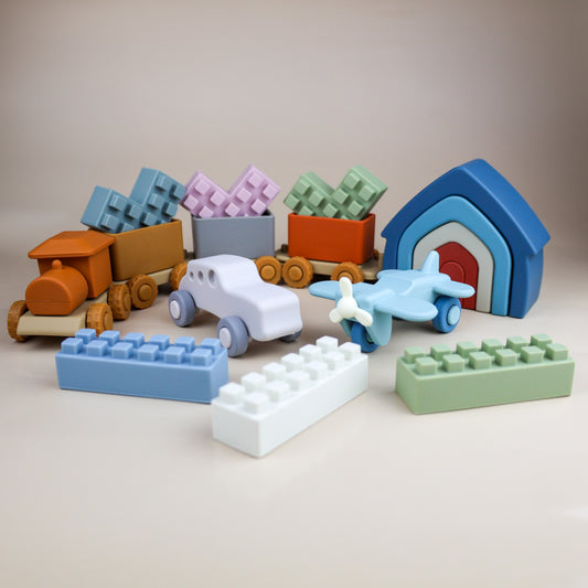Discover our Small World Collection — beautifully designed silicone houses, vehicles, pebbles, bricks and trains that spark imagination, creativity and open-ended play. Safe, durable and perfect for little hands ready to explore.