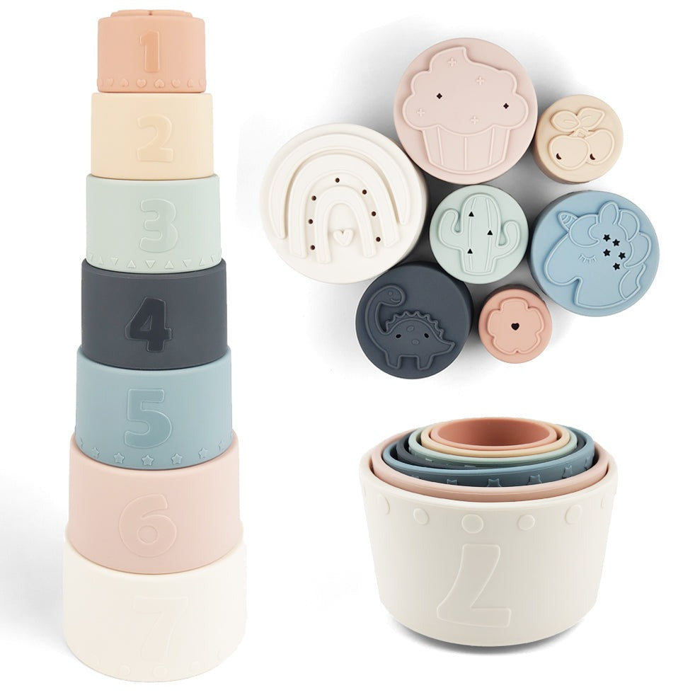 Baby Ellor Silicone Stacking Cups β 7-Piece Set with Unique Patterns πβ¨
