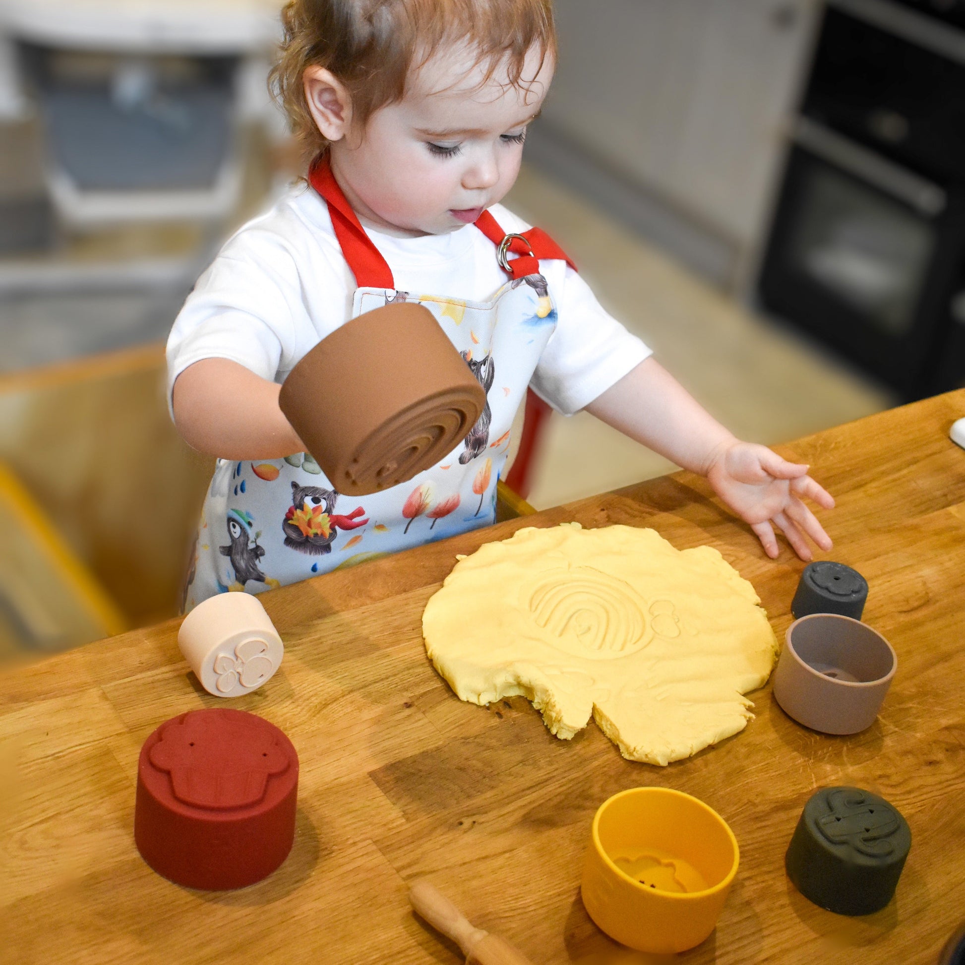 - 7 Silicone Stacking Cups in varying sizes, designed to nest for easy storage.
